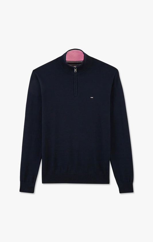 Eden Park Knitwear - Navy blue cotton Half Zip neck sweater