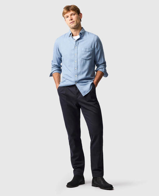 Rodd & Gunn, the Gunn Check Oxford 5 in Dusk Blue