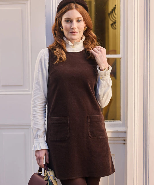 Schoffel Ladies Countrywear, the Sage Cord Pinafore Dress in Chocolate