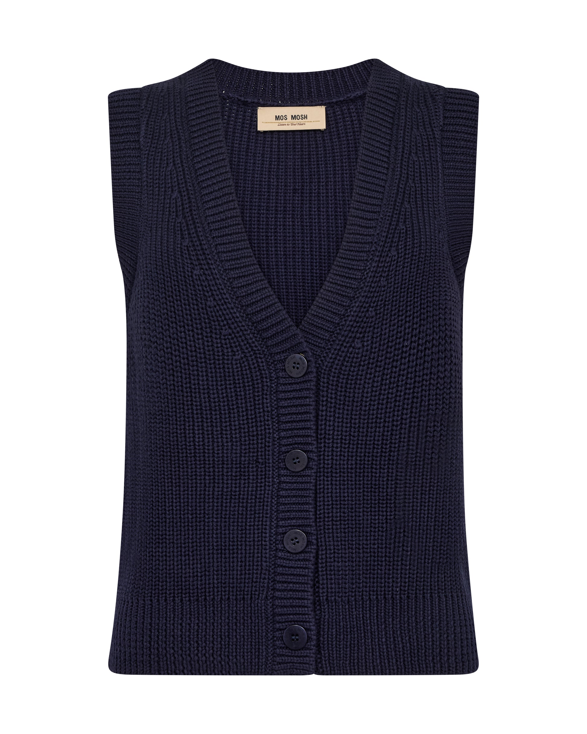 This knit vest is designed with a timeless v-neck and sleeveless silhouette, making it a versatile wardrobe staple. The buttoned front and regular fit provide a perfect balance of sophistication and ease. Perfect for layering, it seamlessly blends comfort with style for any season.