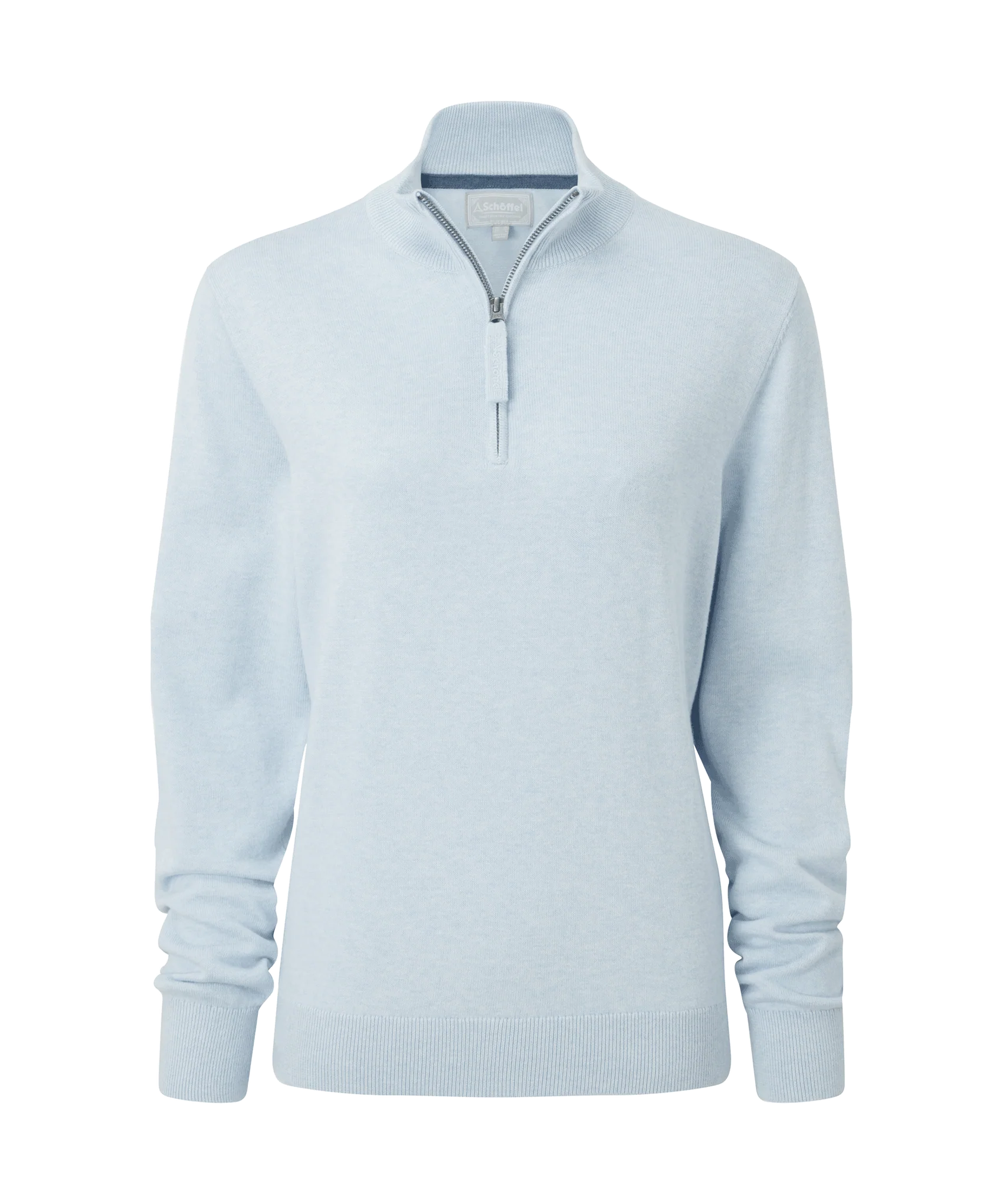 Schoffel Ladies, the Polperro Pima Cotton 1/4 Zip in Blue Water