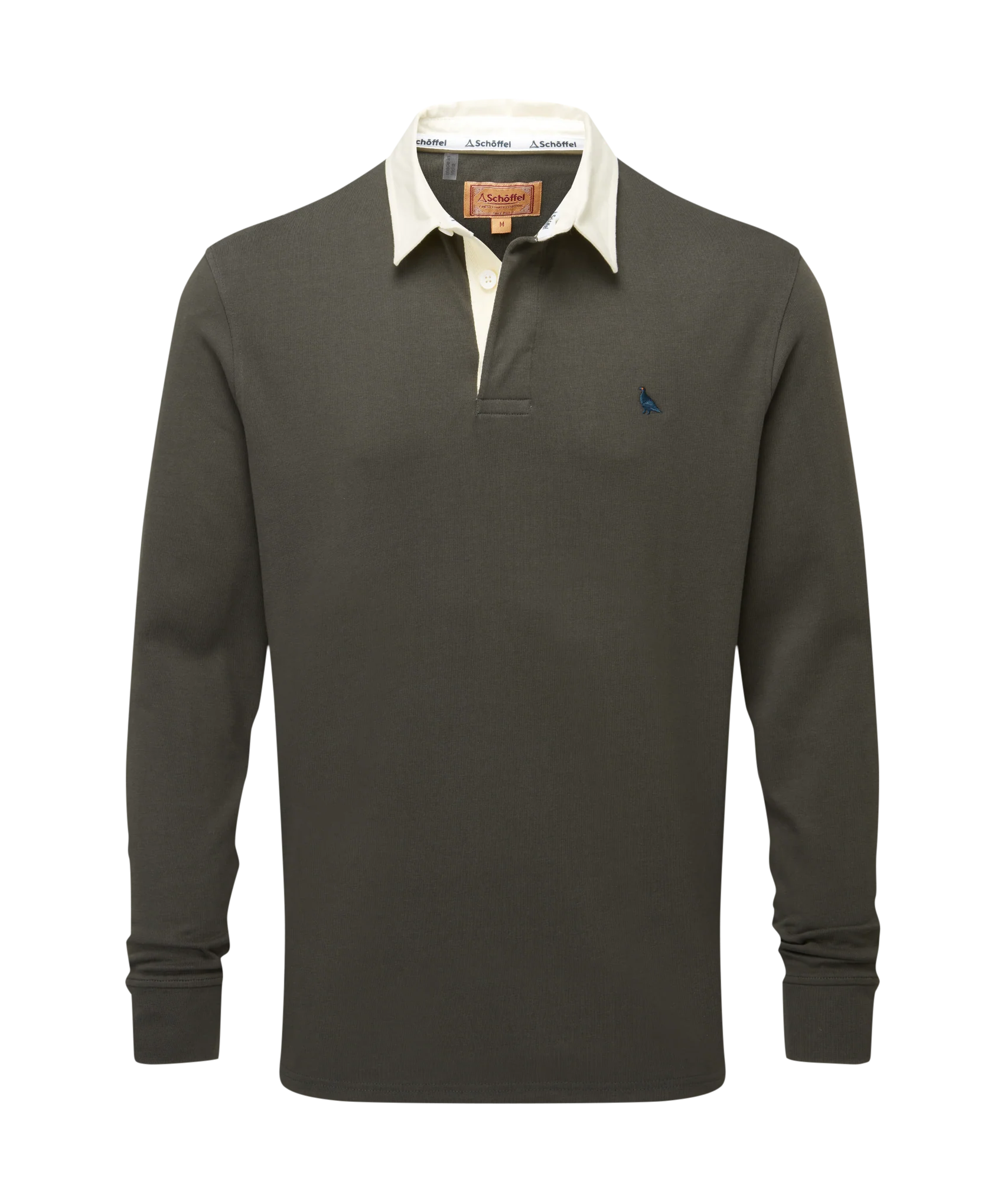 Schoffel Mens Countrywear, the Porthallow Rugby Shirt in Peat Green