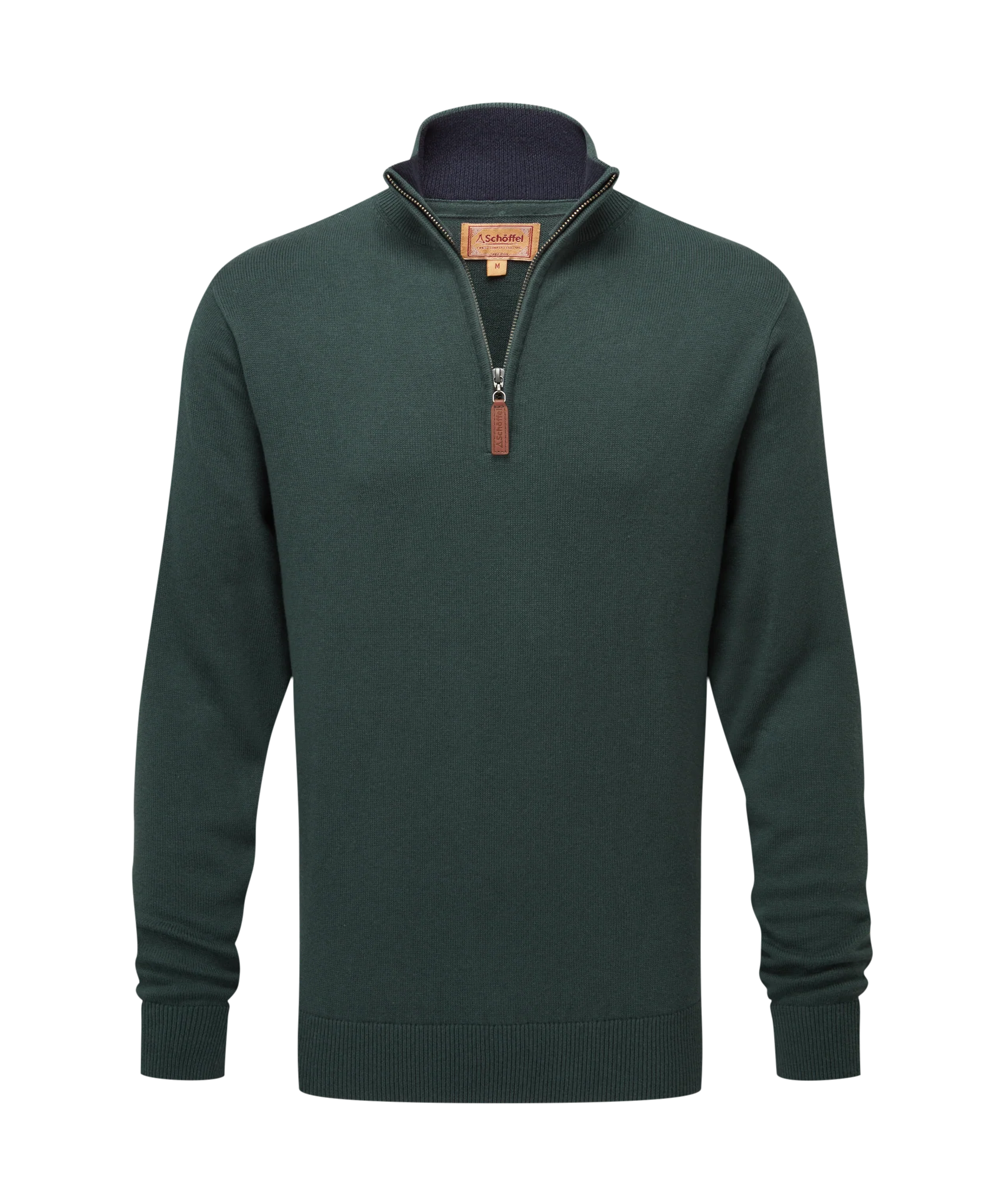 Schoffel Mens Countrywear, the Calton Cotton Cashmere 1/4 Zip Jumper in Botanical Green