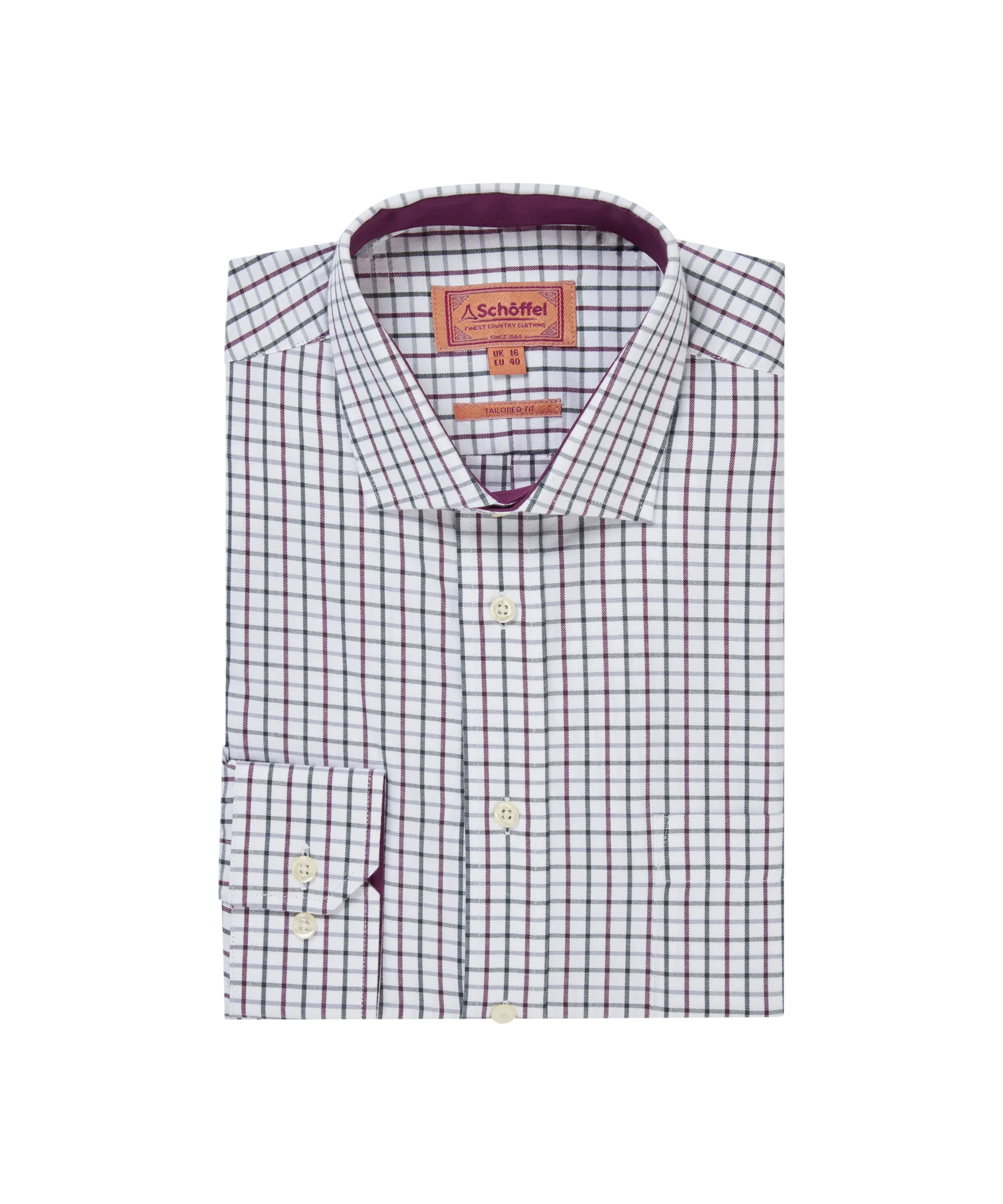 Schoffel Mens Countrywear, the Milton Tailored Shirt in Plum/Botanical Green