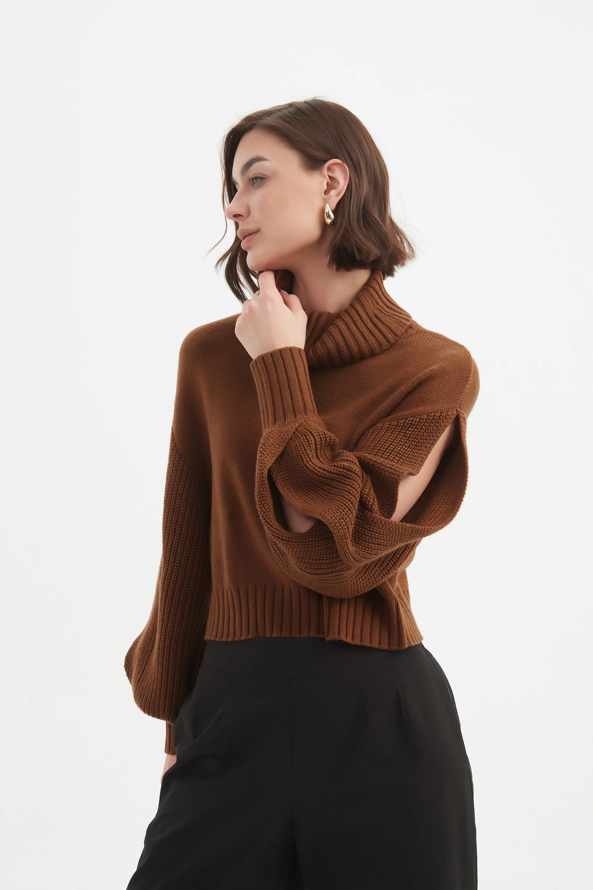A contemporary staple with a statement touch. The Balloon Sleeve Knit features a refined turtle neck, a modern cropped length, and voluminous sleeves with subtle slits for ease of movement. Crafted with rib knit contrast for added texture, this piece blends structure with softness—perfect for effortless, everyday wear.