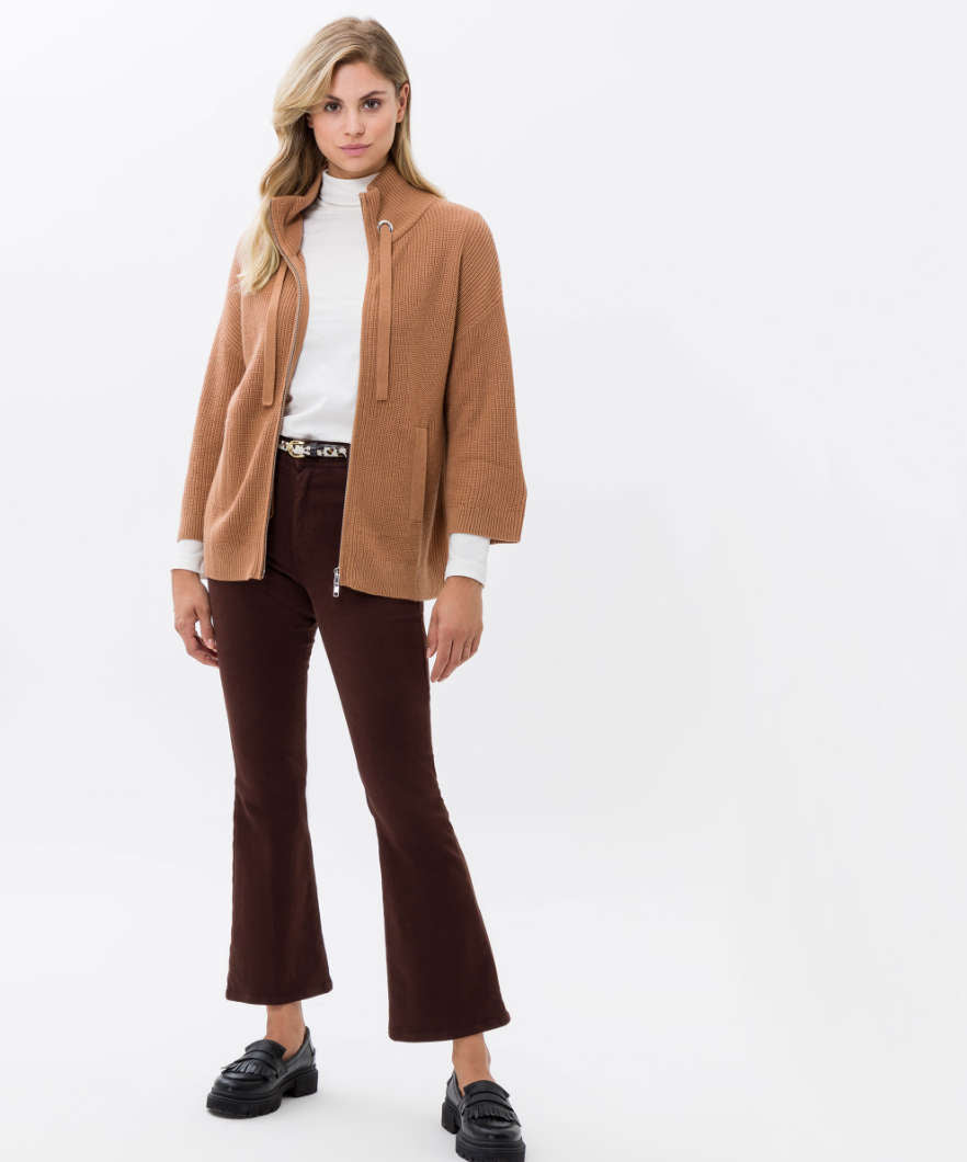 Refresh your wardrobe with our stylish cardigan Style Alex. Designed for the fashion-conscious woman, this model stands out with its clear, straight silhouette that can be seen in any situation. It captivates with its uncomplicated elegance and appears both casual and trendy thanks to its dropped shoulders. A nice feature is the 2-way zipper, which provides a variety of styling options, while the simple welt pockets add functionality without overloading the design. The collar is enriched by a decorative cord, which skilfully rounds off the overall picture. The pearl catch knitting pattern underlines the careful workmanship and the love for detail. The selected material - a mix of wool, polyamide, and polyacrylic - brings together quality and comfort. The wool component provides cosy warmth on cooler days, while polyamide and polyacrylic guarantee durability and easy care. Thus, the cardigan skilfully combines visual appeal and functionality - a must-have for your wardrobe.