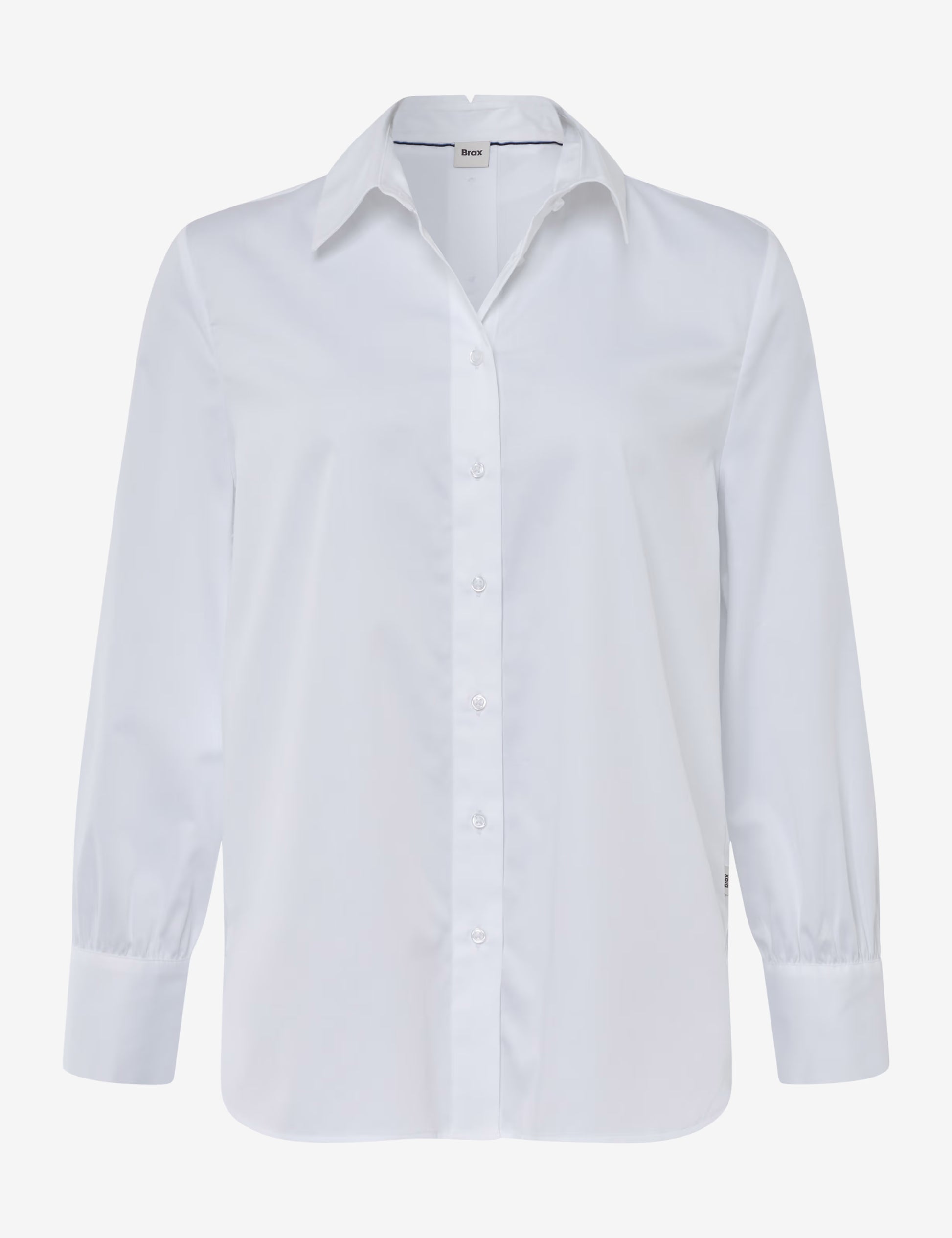 With its trendy appeal, the VIKI style shirt blouse brings a breath of fresh air to any wardrobe. The oversized silhouette lends it a modern casualness, which is given a timeless touch by the classic shirt collar and full-length button placket. Stylish details such as subtle gathers and a shapely yoke add a touch of style. The wide two-button cuffs tastefully round off the look of this women's blouse. Crafted from high-quality pure cotton twill, the blouse impresses with its optimal combination of style and comfort. The material is pleasant on the skin, breathable, and durable, making it a versatile everyday companion. The fine structure of the twill underscores the clean look and gives the shirt blouse a sophisticated feel. A must-have for modern looks with a touch of elegance.