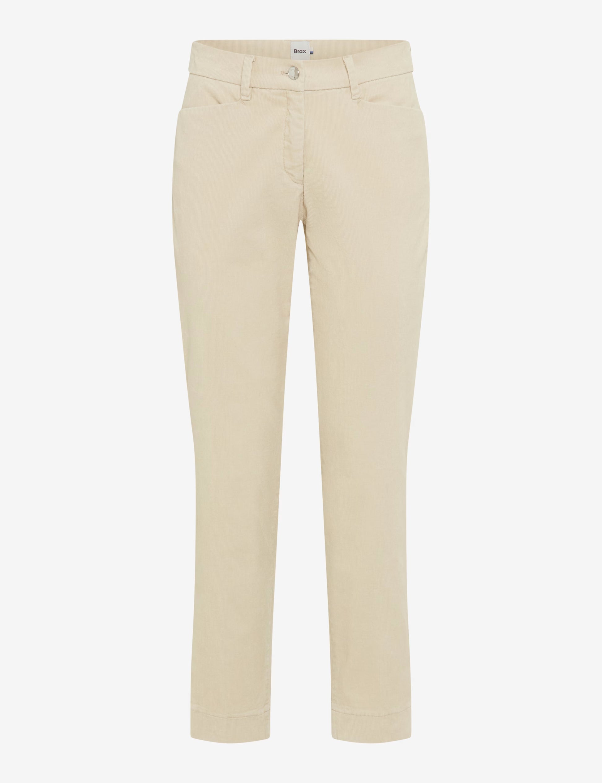 Brax ladies cord trousers in Canvas 60 offer soft corduroy comfort in a versatile neutral shade. Perfect for seasonal layering.