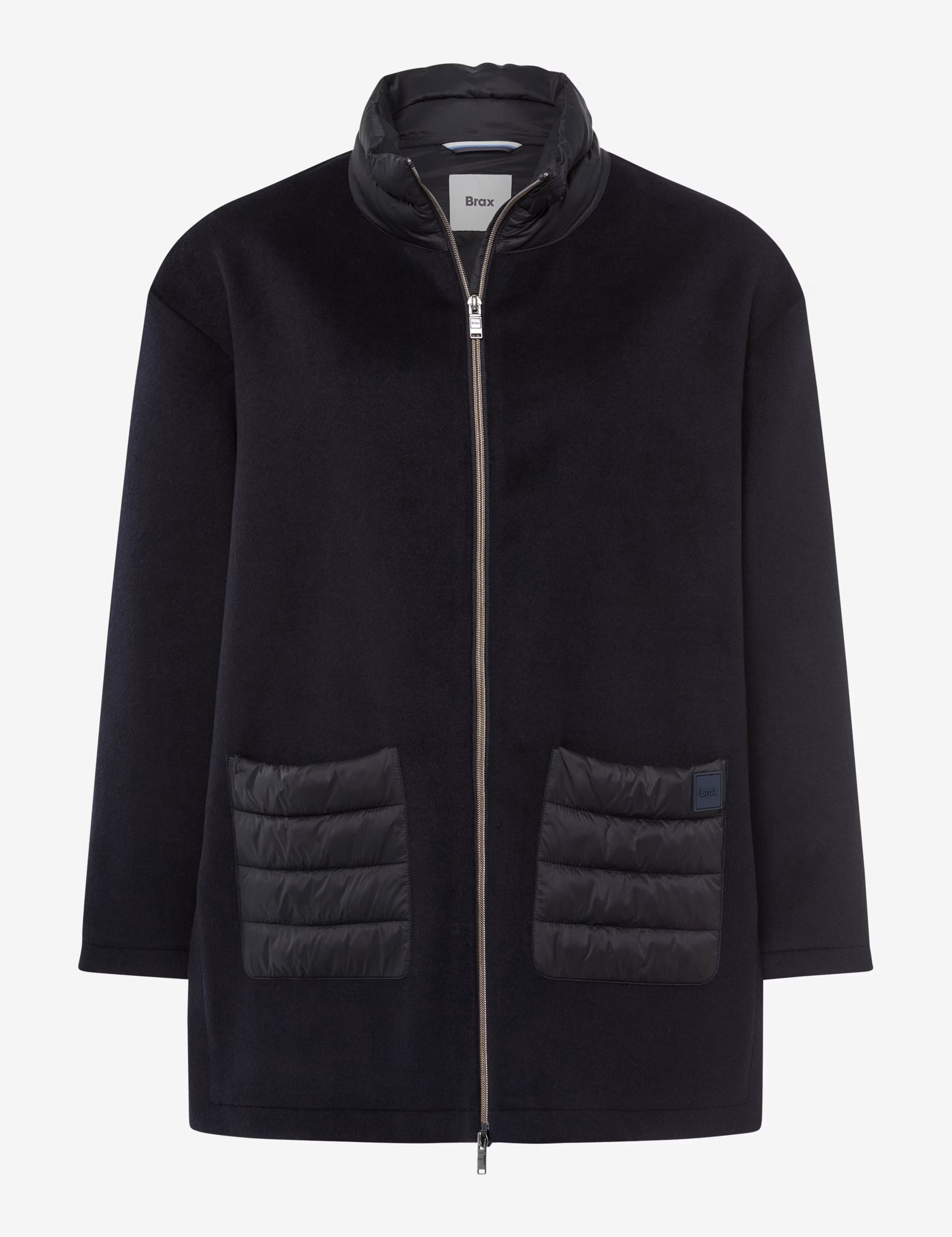 The long jacket in the STYLE OSAKA style will be your new favorite companion for cooler autumn and winter days. With its feminine flared silhouette and the harmonious combination of functionality and style, this jacket will turn heads. The modern stand-up collar not only creates a timeless look but also offers comfortable protection from wind and weather. Quilted patch pockets lend the design a casual touch and offer practical storage space, while discreetly integrated hem slits facilitate freedom of movement. The two-way zipper ensures flexibility and underscores the sophisticated design. Crafted from a high-quality blend of wool and polyester, this jacket combines the warming and breathable properties of wool with the shape stability and robustness of polyester. The flannel ensures a soft feel and a pleasant feel. Whether for a stroll through the city or a relaxed excursion – this jacket combines comfort with a touch of elegance and will accompany you stylishly through the cold season.