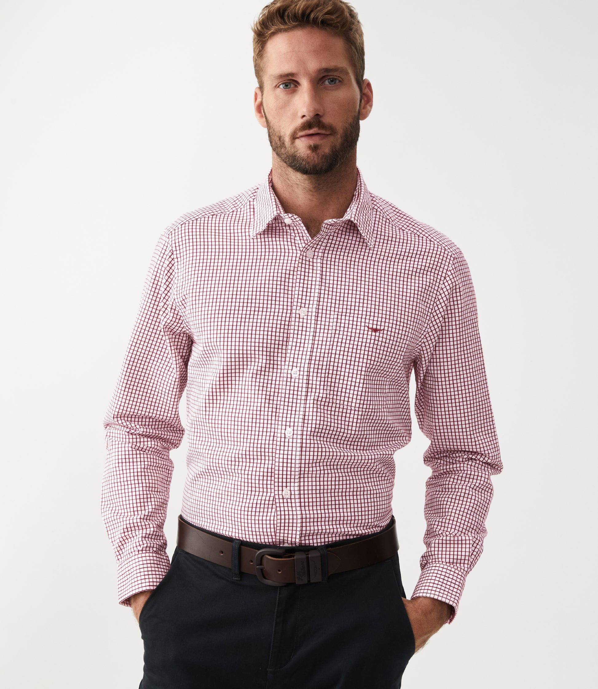 R.M Williams Shirts, The Collins Shirt in Burgundy White