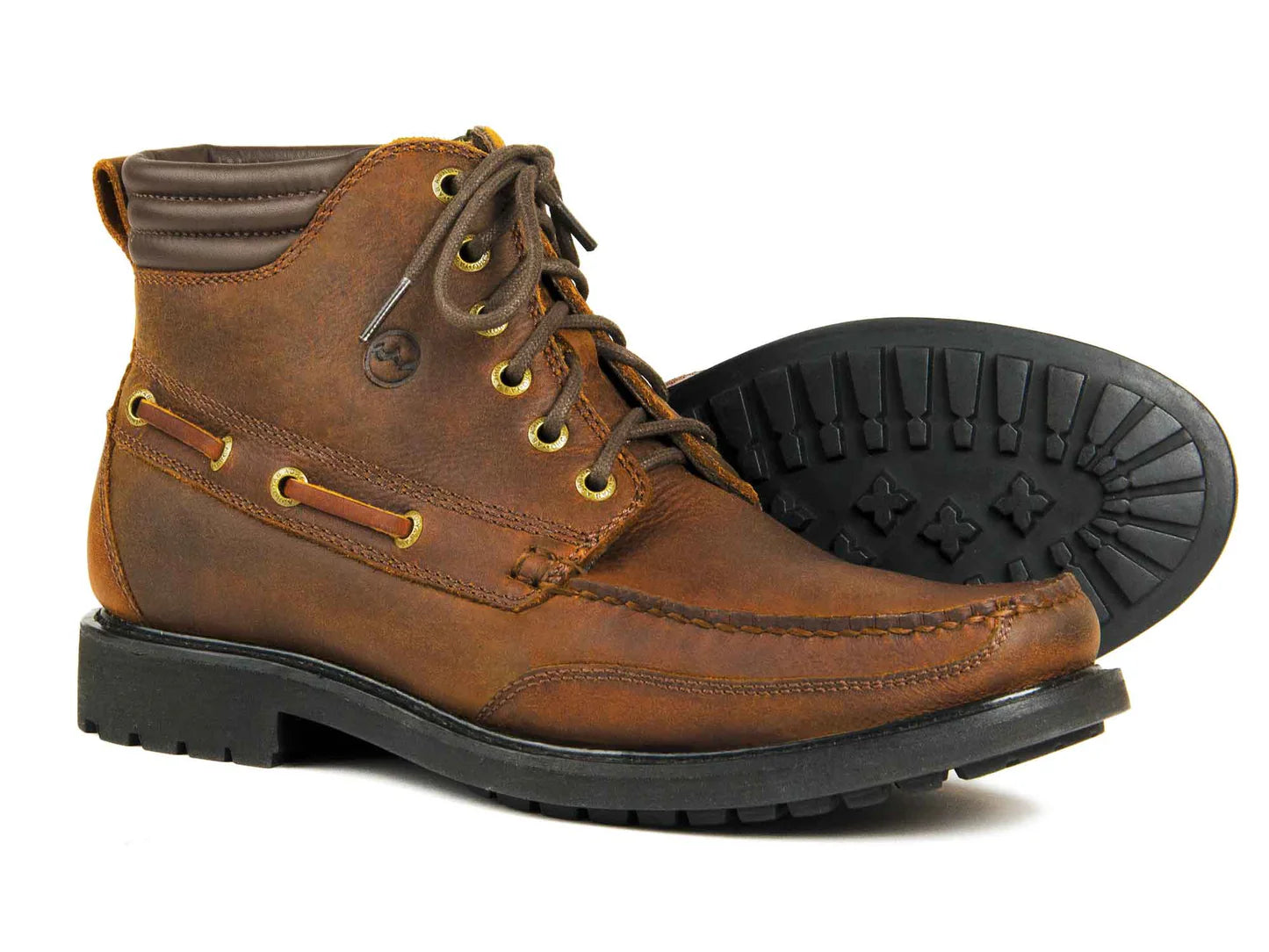 The Dartmouth men’s country boot in Havana leather by Orca Bay delivers water-resistant protection, cushioned insoles, and heel padding, complemented by a robust deep-tread sole. This durable boot is designed to provide reliable comfort and performance for countryside walks and daily use.