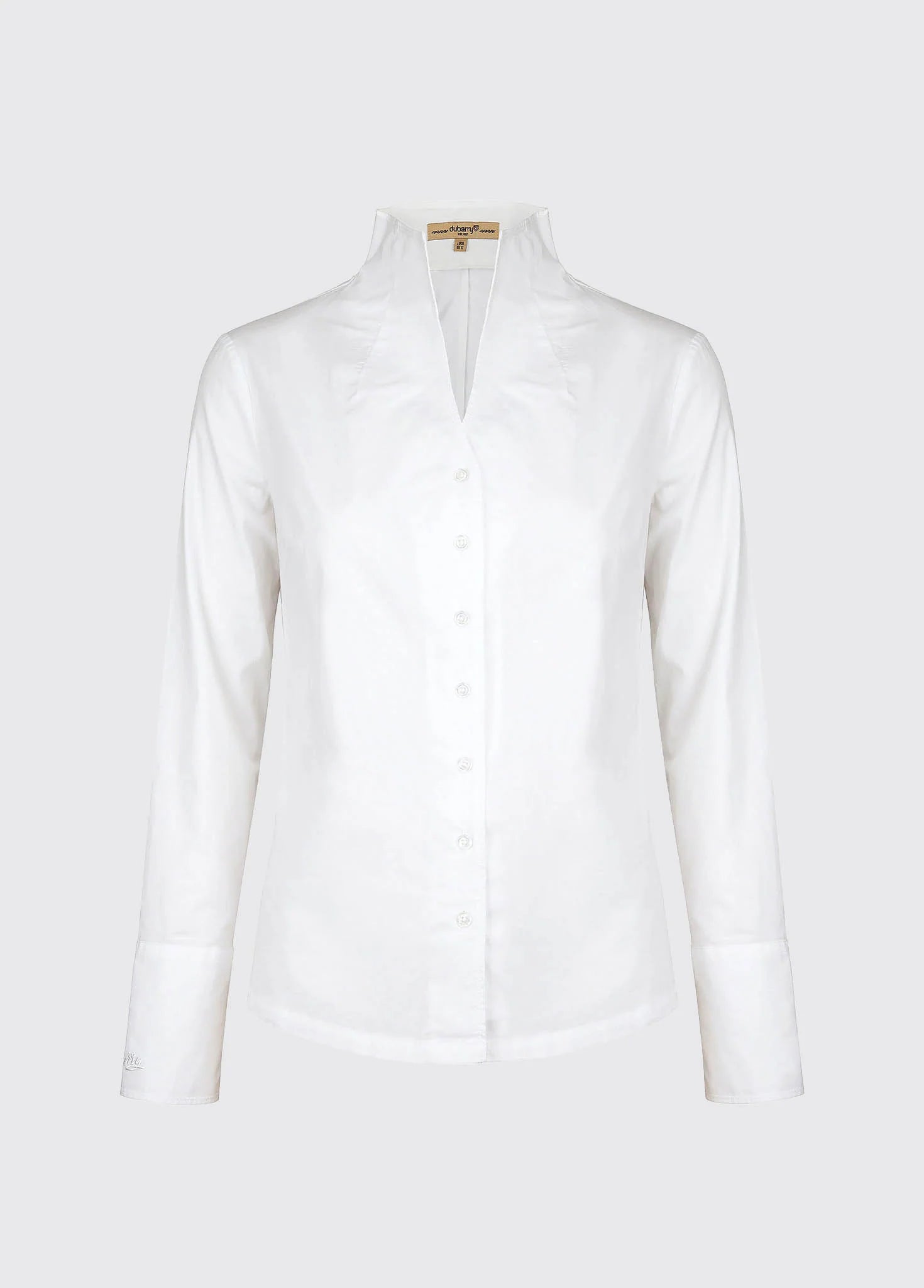 Dubarry's White Snowdrop Shirts (SS25) boast Stretch Cotton and feature a Portrait collar and clean finishing hem for a high-quality, fitted look. With intricate details like barrel cuffs, buttoned sleeve plackets, and imitation pearl buttons, these shirts truly elevate any outfit. The embroidered logo on the cuff and double needle topstitch detail showcase the brand's attention to detail and expertise in shirt-making.