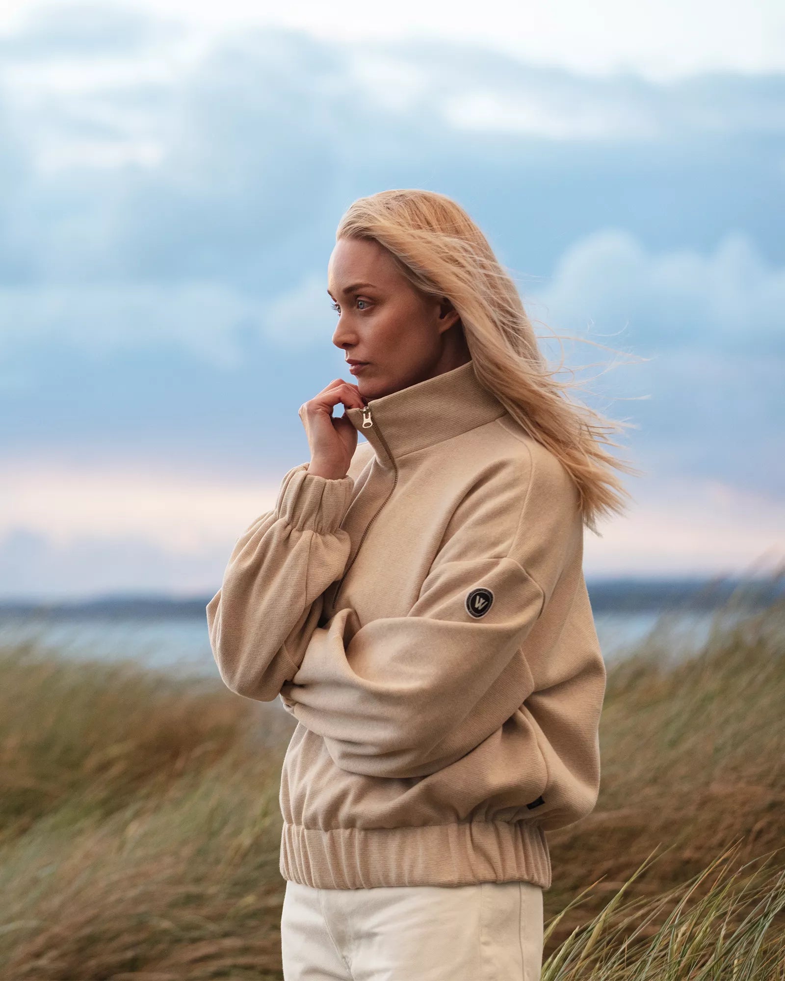 Knitted windproof sweater in 100% cotton. Collar with zipper and dropped shoulders. Milano knitted, which provides firm quality. Relaxed fit and wide elastic at the bottom and at the cuffs. The sweater has a windproof lining consisting of 96% polyester and 4% elastane. No chemicals are used to achieve the windproof function. Instead, the lining is manufactured with a special weaving technique that makes the fabric extremely tightly woven and therefore also windproof, while the fabric breathes. The elastane makes the fabric stretchy, which means that it stops the wind but not movement. The fabric is marked with ÖKO-tex® Standard 100, which guarantees that the fabric is free from substances harmful to health.