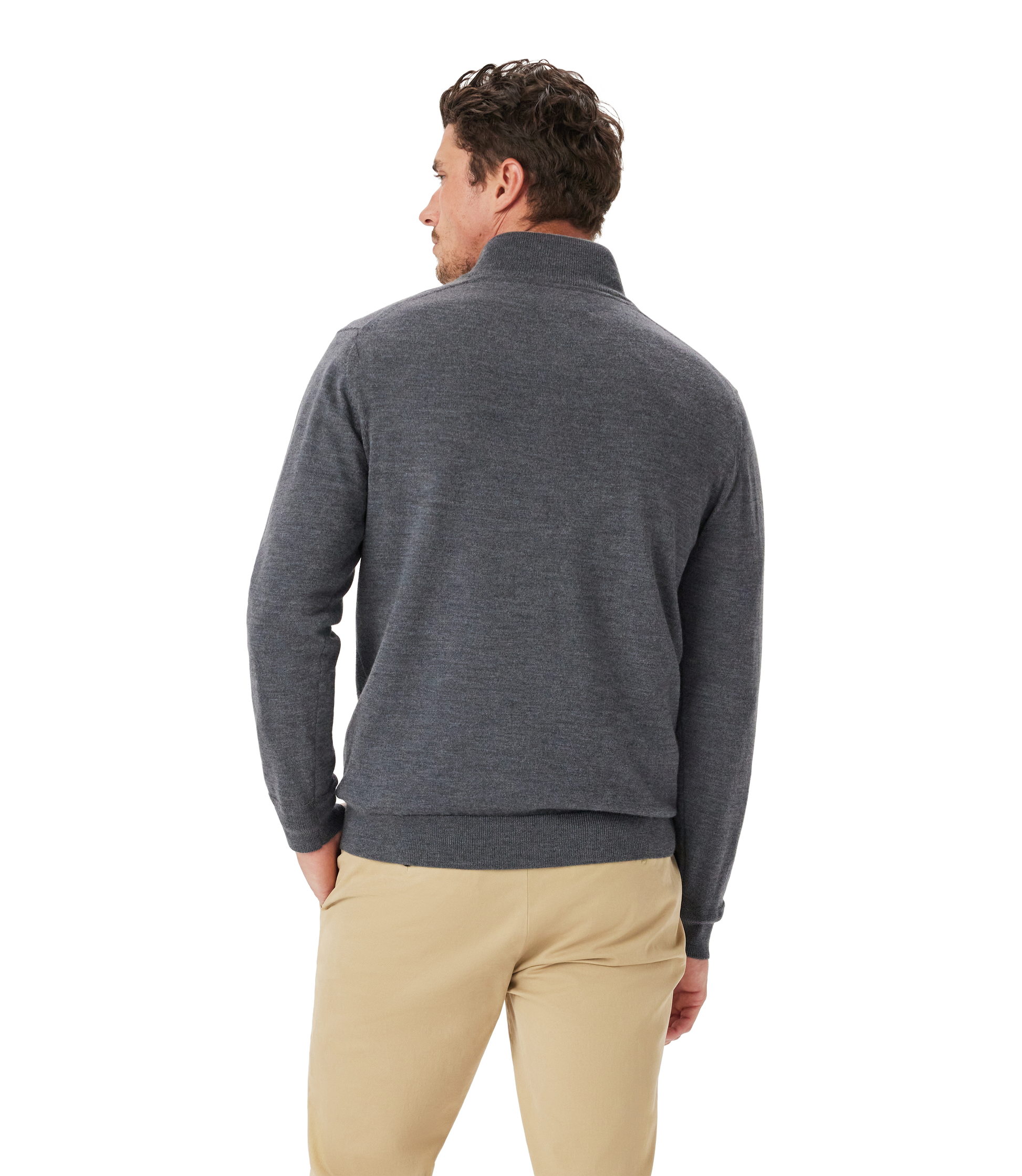 This quarter-zip knit features a branded leather puller, full-length sleeves and a funnel neck with branded leather puller. Crafted from Australian extra-fine Merino wool in a fine jersey knit.