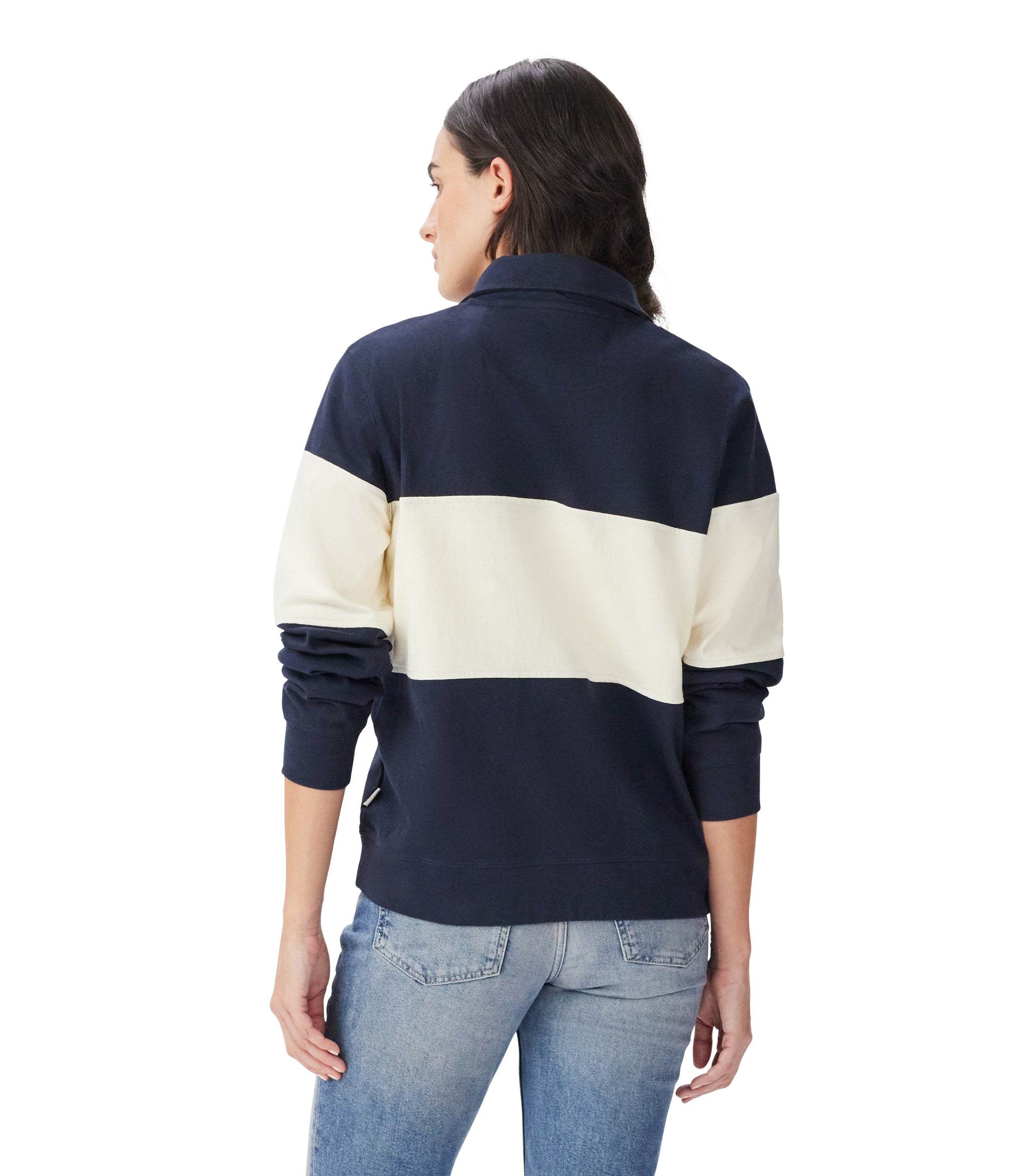 RM Williams bestselling ladies quarter zip silhouette, reimagined with classic sportswear-inspired panelling. Crafted from organic cotton, this style features a zip neck and Heritage logo embroidery on the chest.