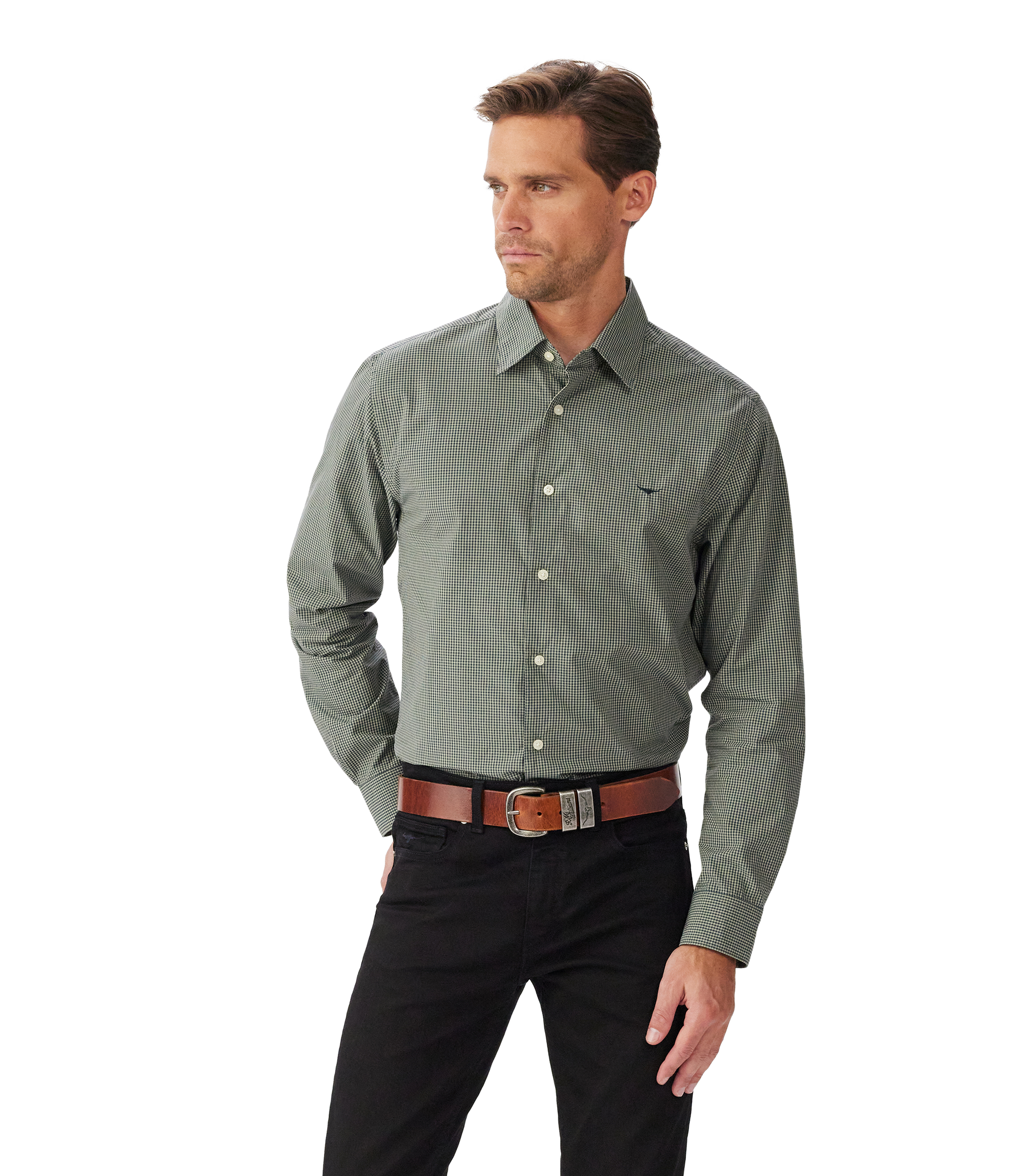 R.M. Williams Parkes Regular Poplin Shirt in Sage Navy