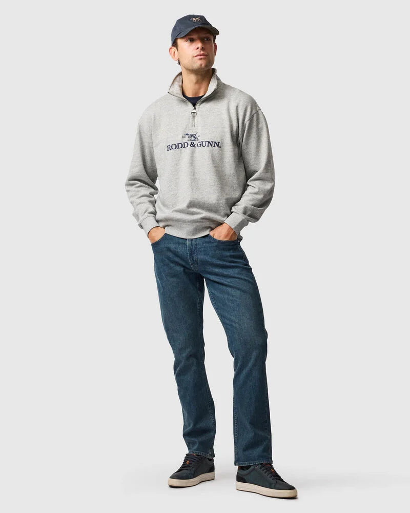 Designed for versatility, this quarter zip sweater features a high neck for added warmth. Wear it zipped up for a sleek look or unzipped for a more casual vibe. This version is adorned with the Ross & Gunn logo embroidered on the chest.